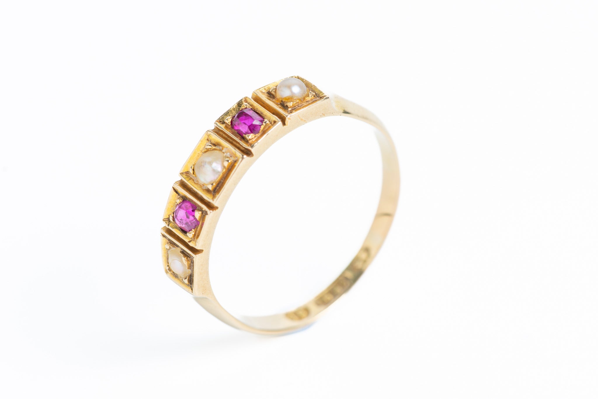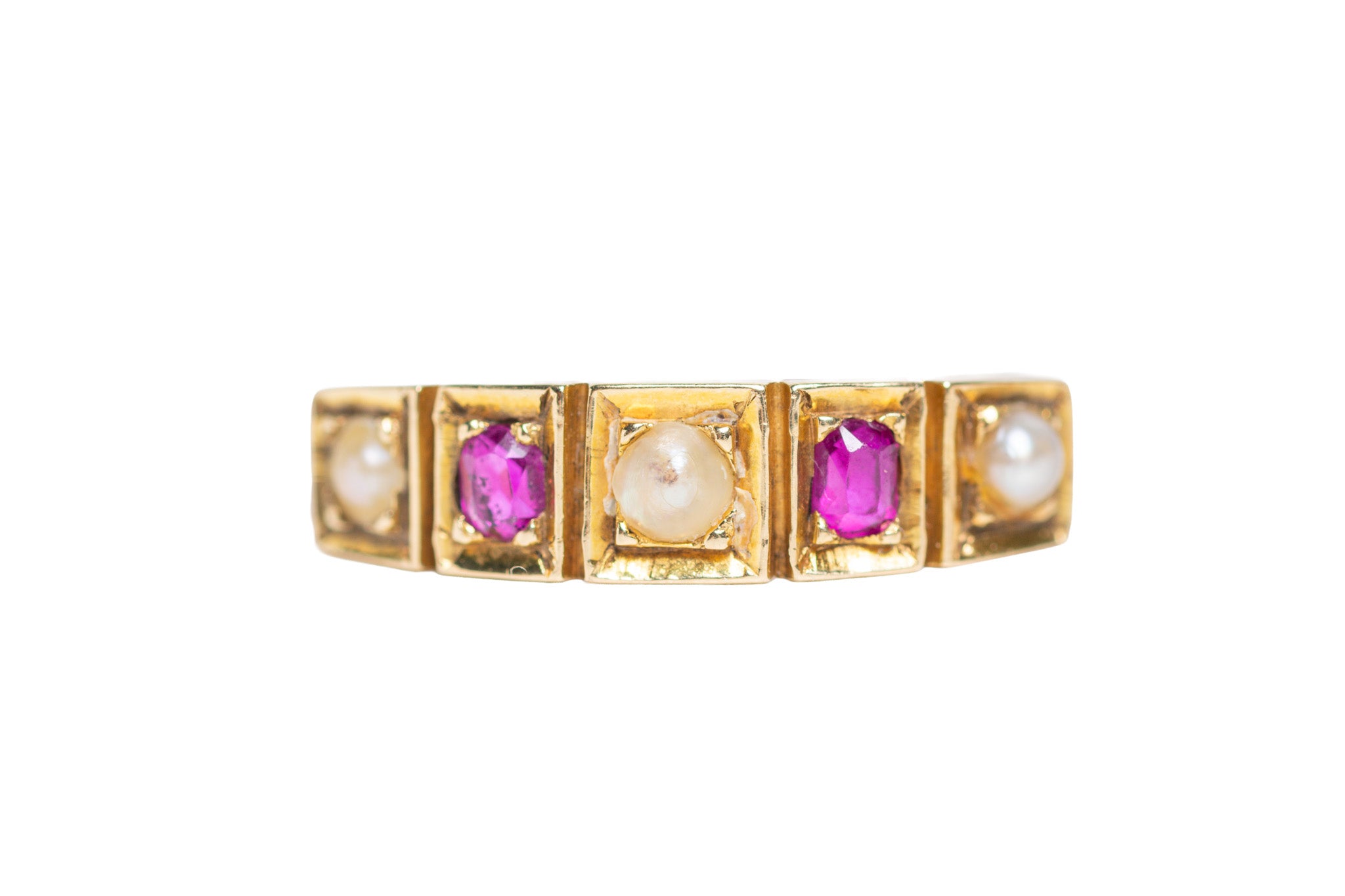 Antique Victorian 15ct Gold Ruby & Pearl Ring