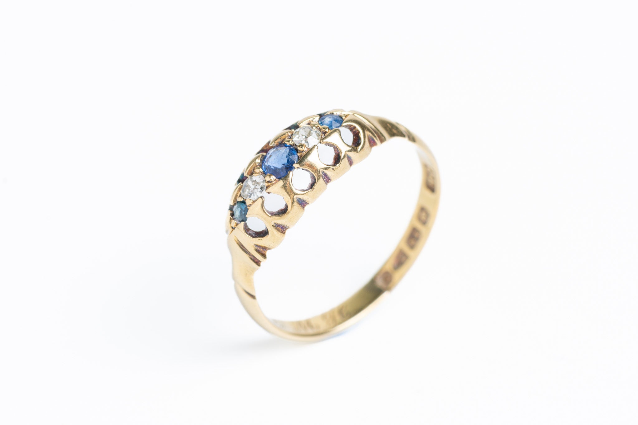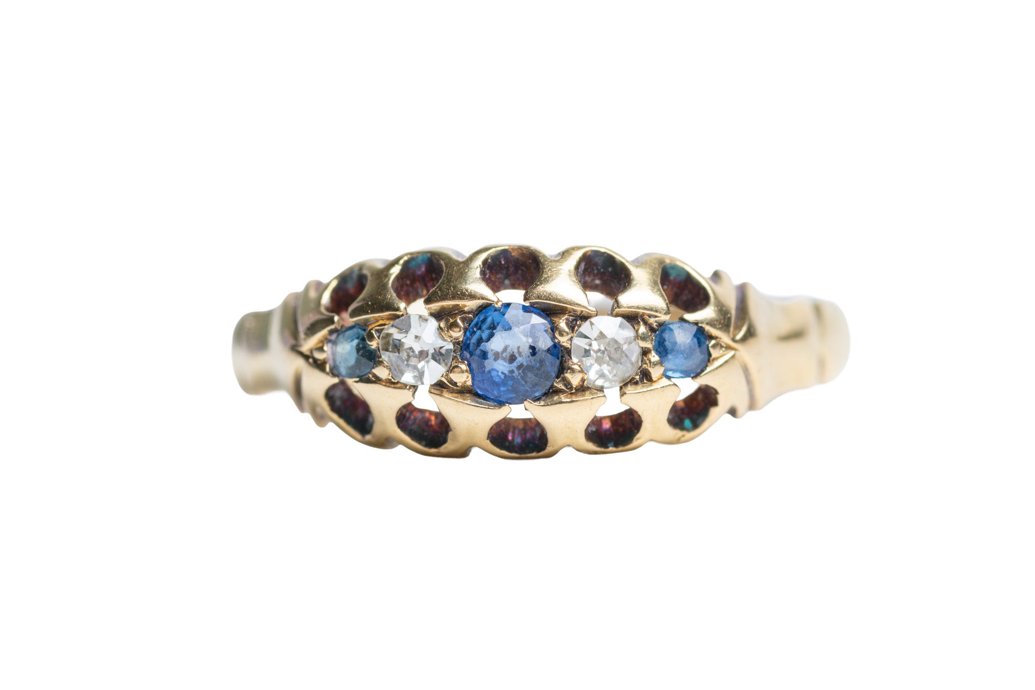 Antique Victorian 18ct Gold Diamond And Sapphire Five Stone Ring