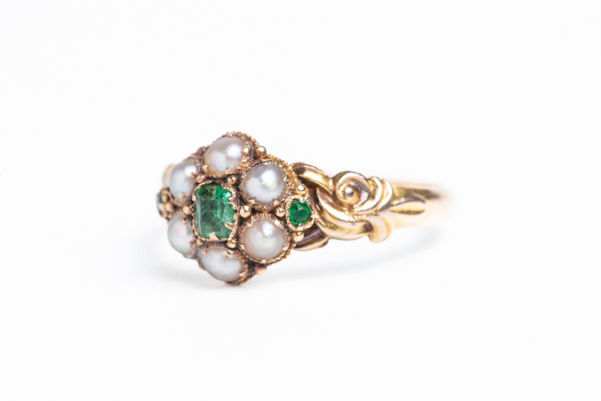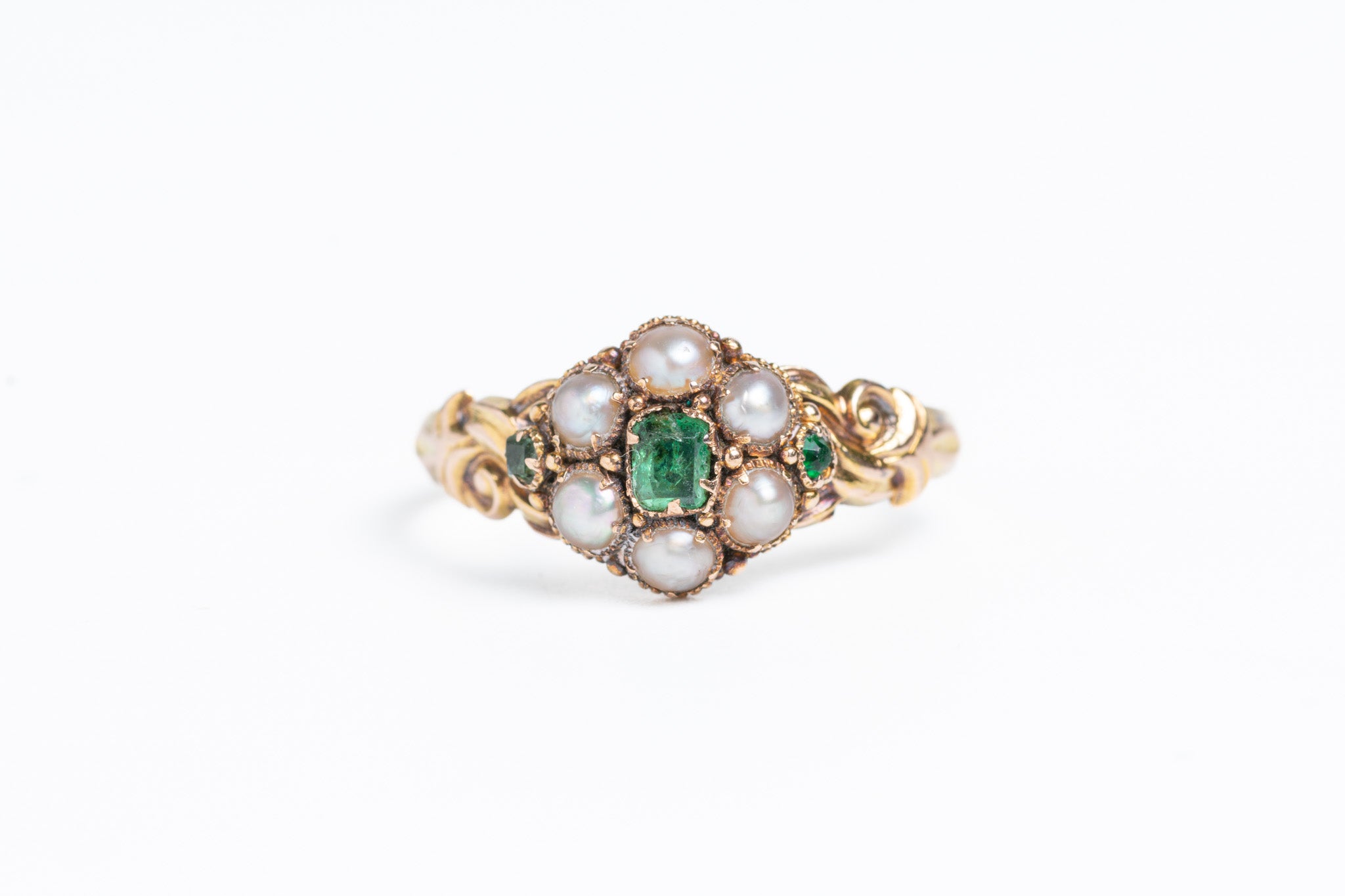 Antique Georgian 15ct Gold Pearl & Emerald Cluster Ring