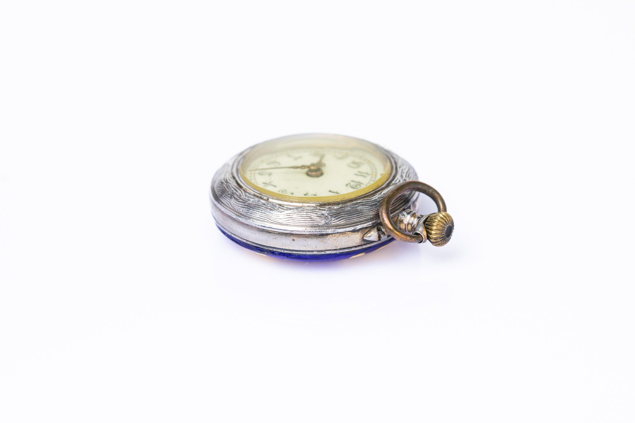 Antique Swiss Silver and Cobalt Blue Guilloché Enamel Pocket Watch Pendant