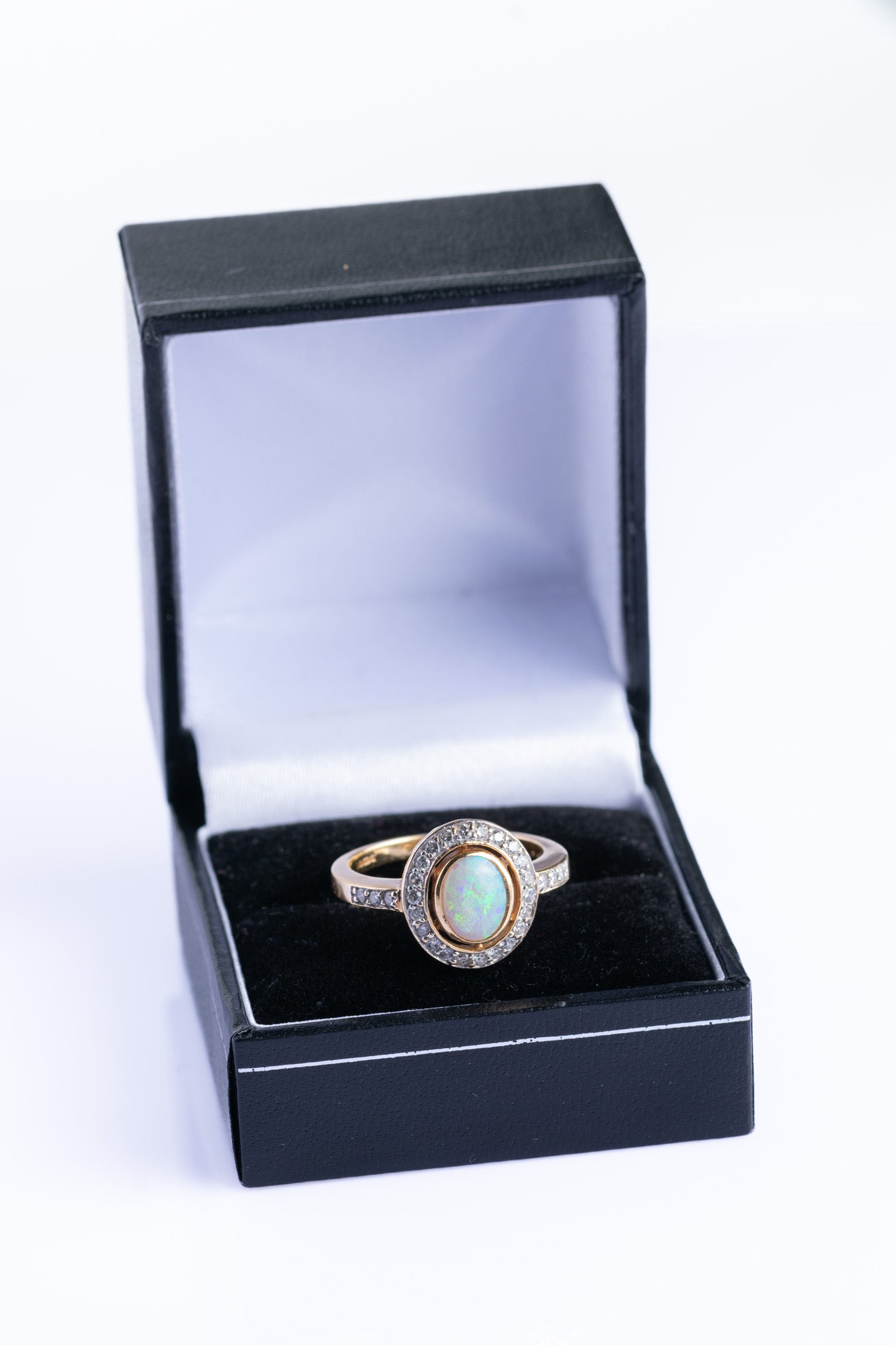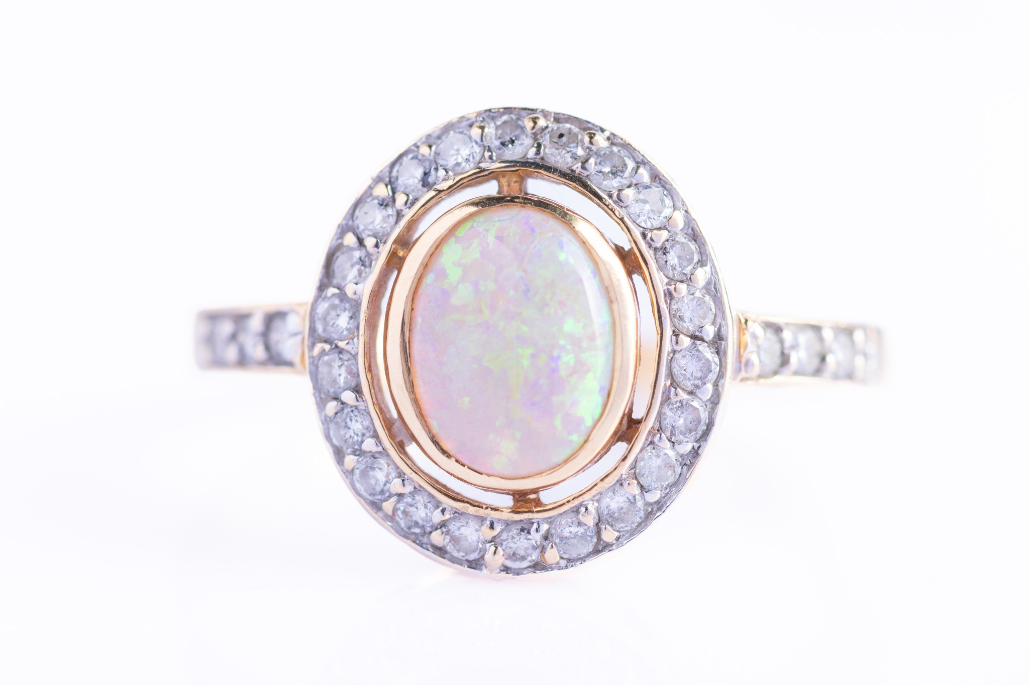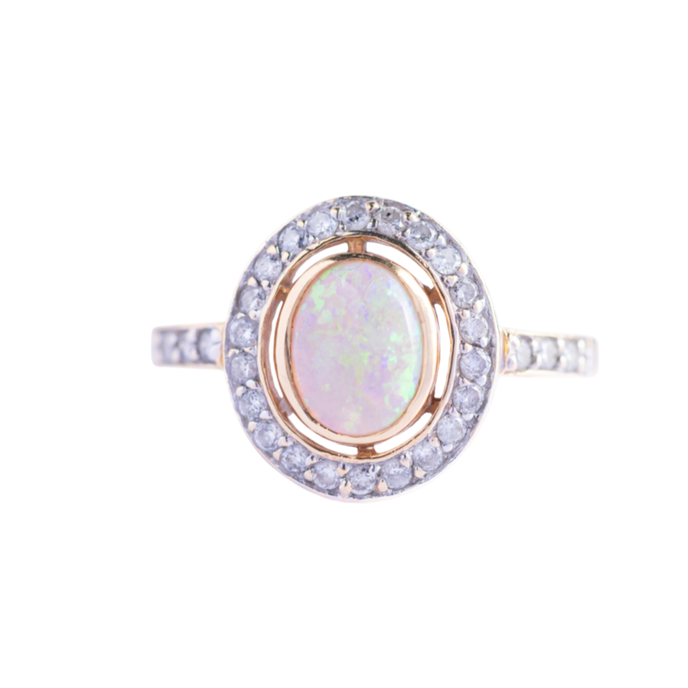 Vintage 18ct Gold Opal and Diamond Cluster Ring