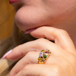 Vintage Italian 14ct Gold Multi-Gemstone Bombe Ring